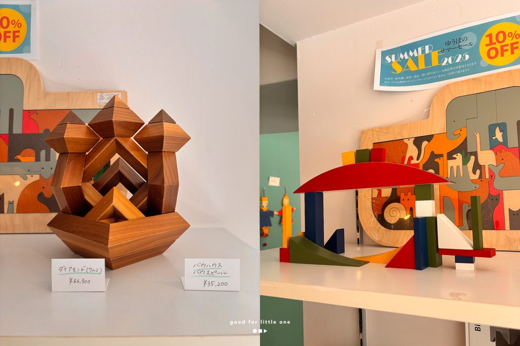 從瑞士 Naef 的精密結構、開放式玩具德國GRIMMS 與 Grapat 的詩意色彩,到荷蘭 Abel Blocks 的優雅弧線。每一件選品,都是能陪伴孩子長大的藝術品。雖然大部分商品台灣都有代理了,但網路購物居多的我,少有機會進到實體店去摸到這些玩具。ゆうぼ有很多試玩商品,就趁此機會東摸摸西摸摸。